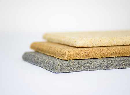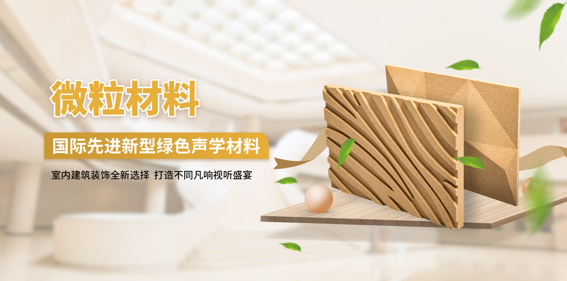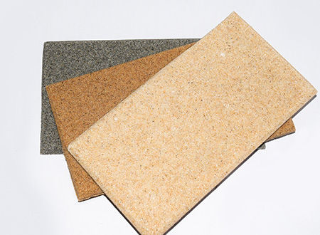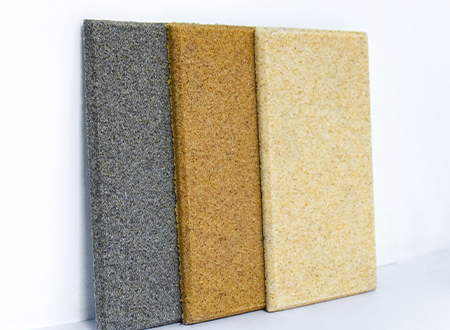微粒材料是一種新型綠色裝飾材料,具備優(yōu)異的聲學(xué)性和物理性能。該材料是以天然砂粒或經(jīng)環(huán)保處理的固廢顆粒為骨料,以環(huán)保膠凝劑,通過(guò)壓振工藝,生產(chǎn)的具有大量相互連通的微小空隙的多孔材料。